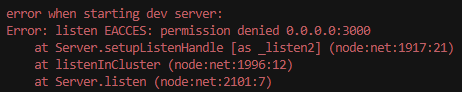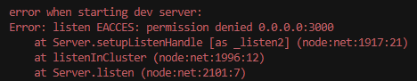 Error: listen EACCES: permission denied 0.0.0.0:3000